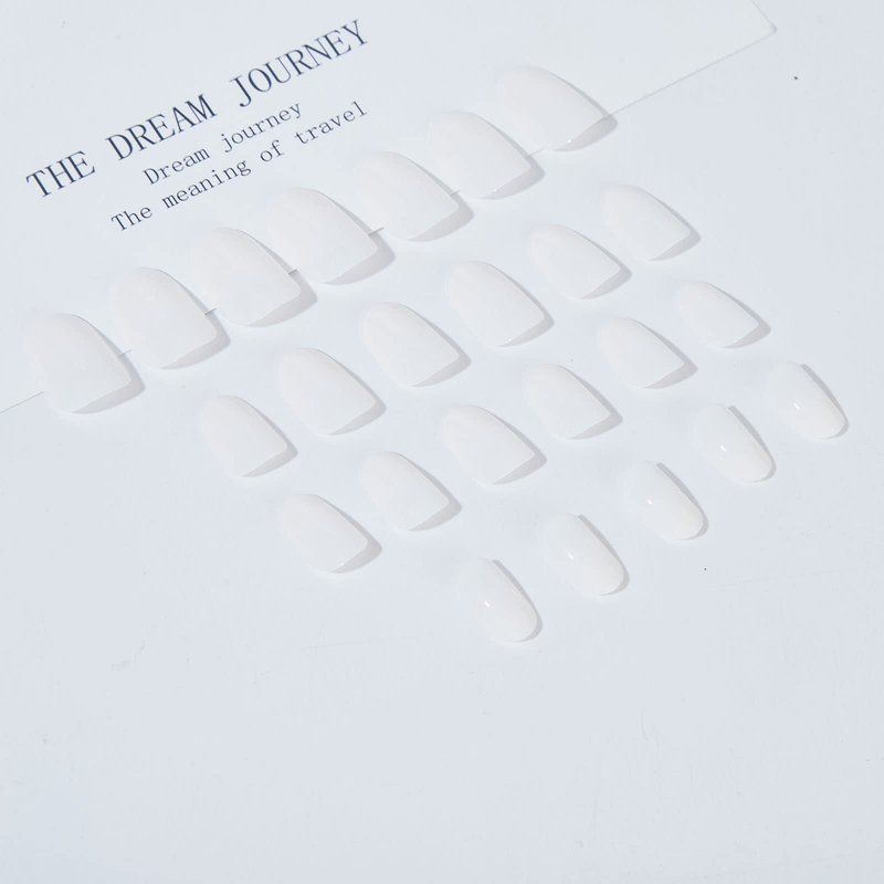 YoYoee Short Milky White Press on Nails Almond False Nails Solid Color Nail Art Acrylic Full Cover Fake Nails Cute Nails Tips for Womon and Girle 24 Pcs