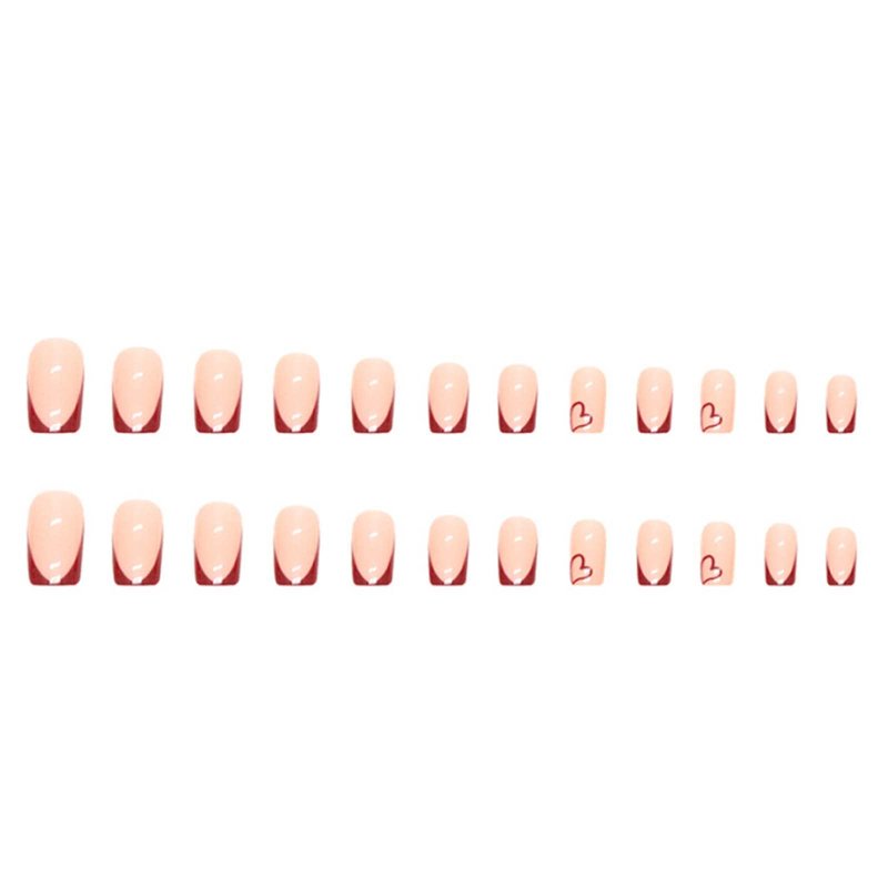 YoYoee Short Square False Nails French Press on Nails Red Fake Nails Acrylic Cute Nails Tips for Women and Girls 24PCS