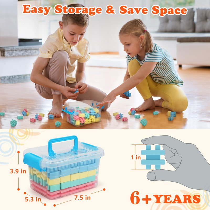 YOYOUTH Building Blocks: Stacking Block Sets Toys for Kids Ages 6+ with 100 Pieces and Storage Box, Soft Silicone Blocks for 6+ Years Old Boys & Girls, Birthday Gift