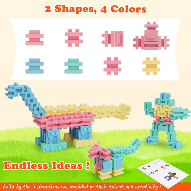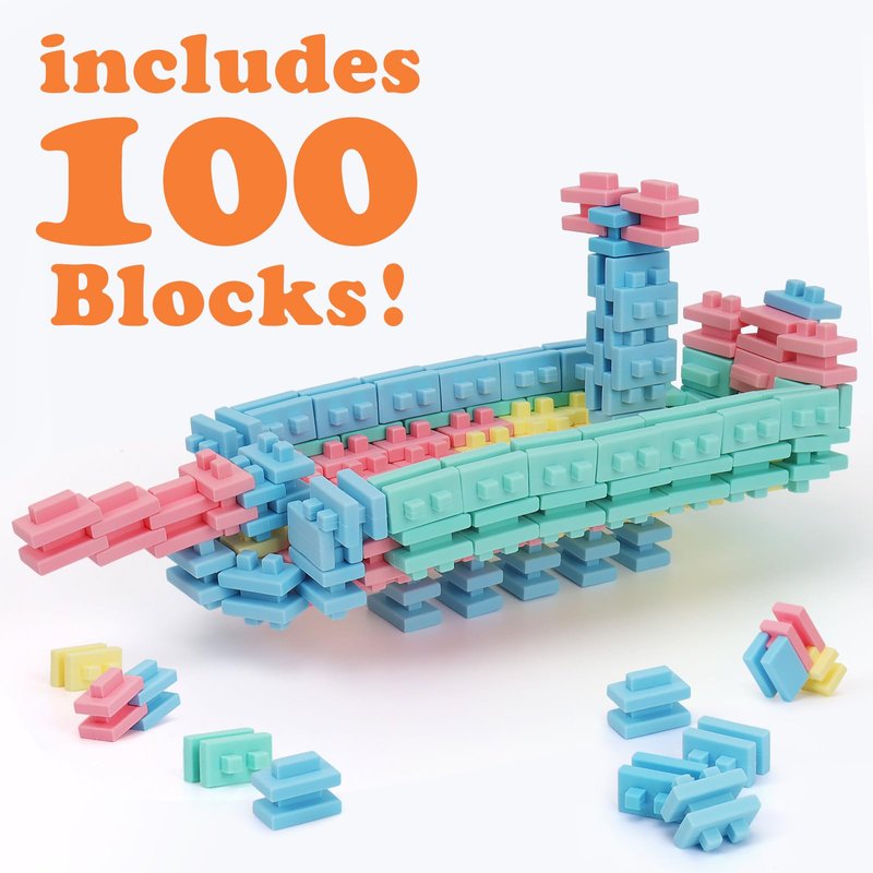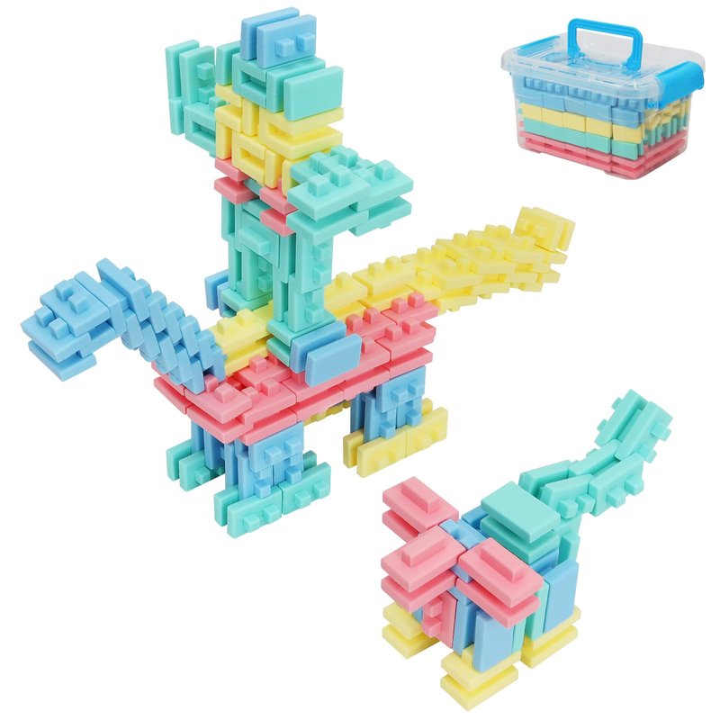 - 【100 Pieces & Easy Storage】This building block set has 2 shapes, 4 colors and 100 pieces. Children can build different buildings, cities, animals, castles or any theme they can imagine, and the included instruction manual guides them in stacking dinosaurs, ships, robots, flowers, and more