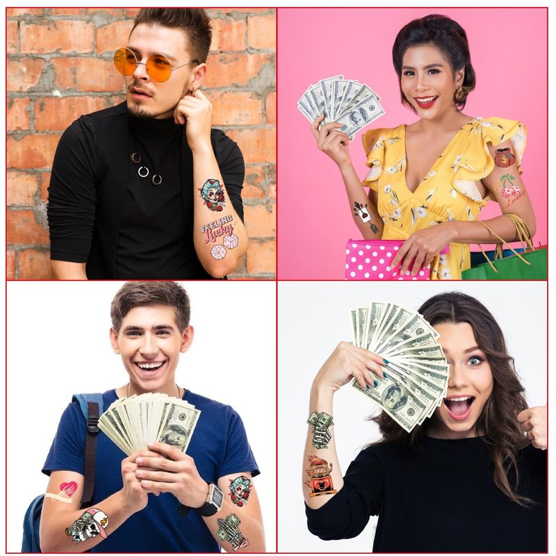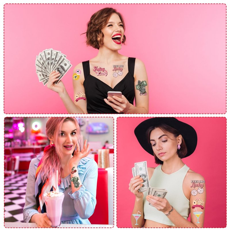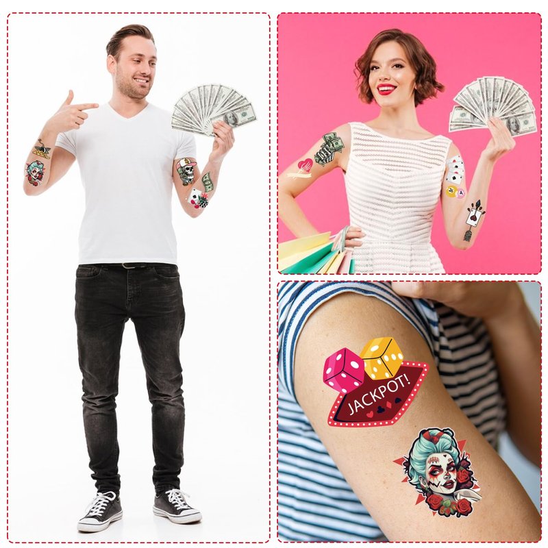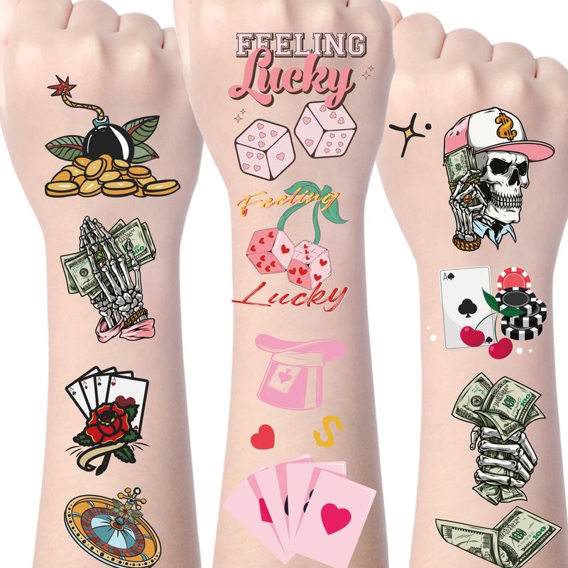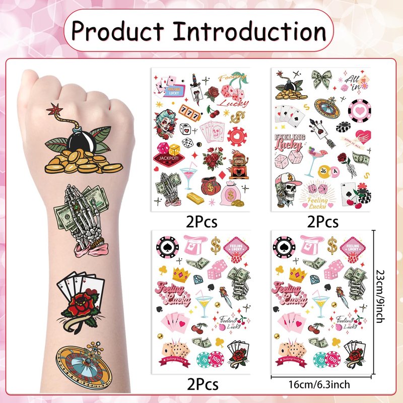 - Usage Scenarios: These tattoo stickers are suitable for a variety of occasions, including casino theme parties, casino birthday decorations, Las Vegas style parties, game night parties, etc. They can not only serve as party decorations, but also as event souvenirs, allowing guests to take the luck and joy of the party home.