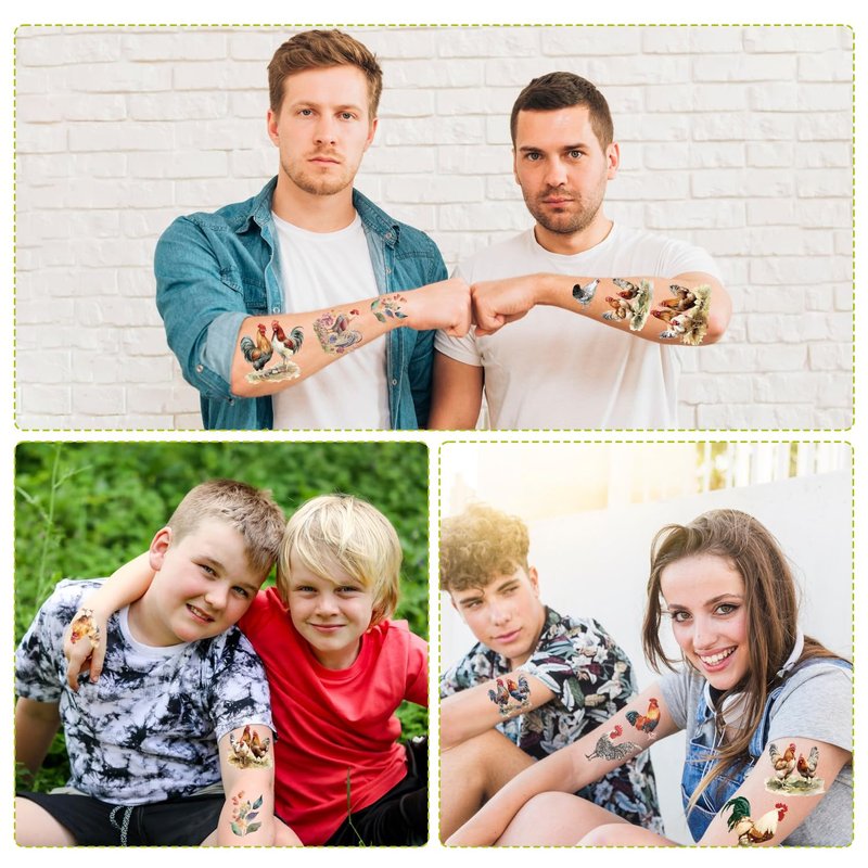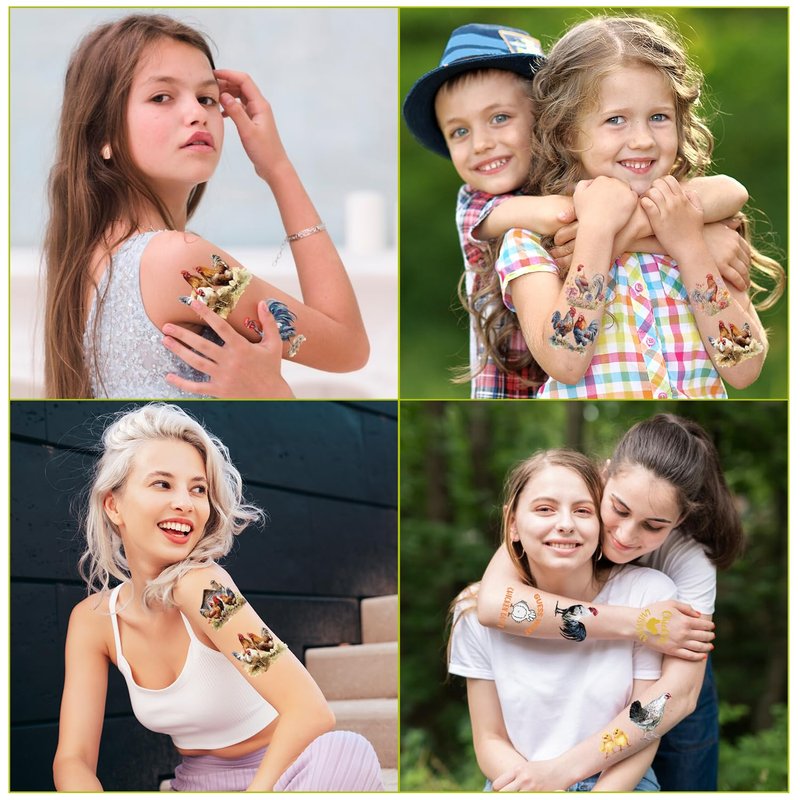 - CHICKEN TEMPORARY TATTOOS: Our chicken themed tattoos are the farm party gift decorations you've been looking for, rich in adorable hen and chick pattern tattoos that are sure to be a big hit!