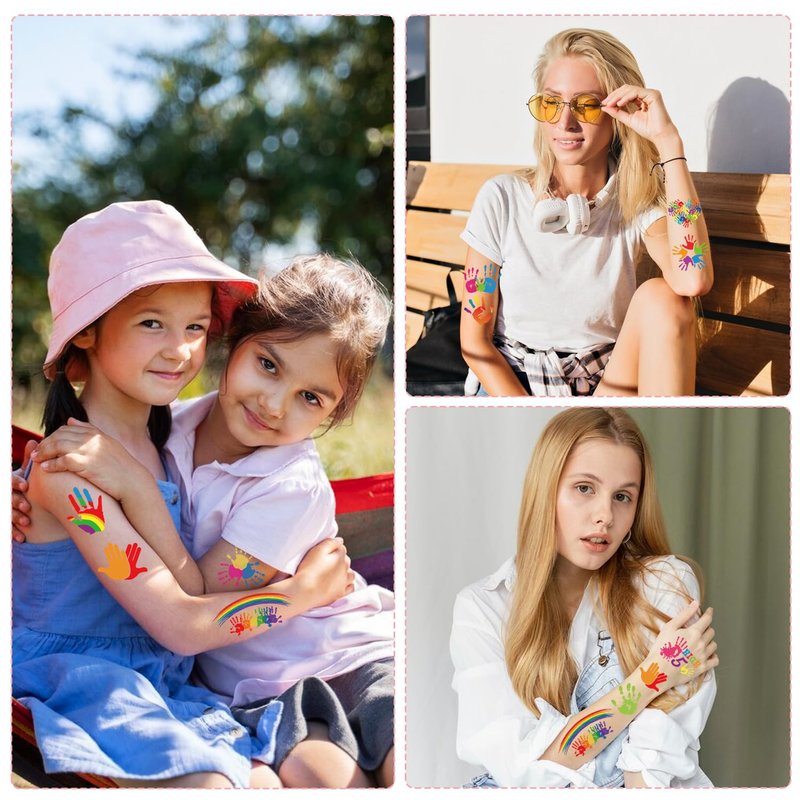 - Interesting Design: This is a cool temporary tattoo sticker designed on the theme of hi five! It has a fun design you made up of hi five gestures in different colors, blue, green, red, colorful, and all kinds of other colors! Get ready to use it to have yourself a good time! High five together!