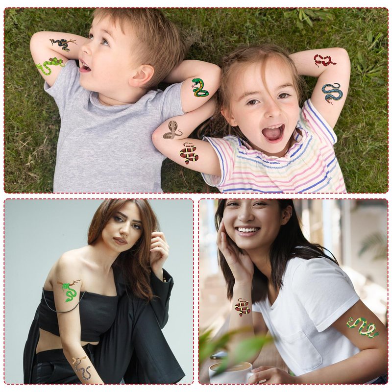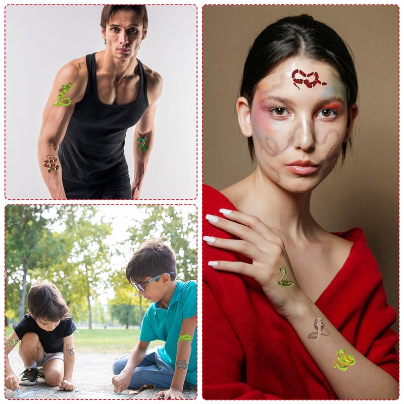 - Wide Application: Snake temporary tattoo stickers are perfect for creating a unique party atmosphere, ideal for snake parties, reptile parties, animal theme parties, jungle theme parties and more. Snake tattoo stickers can be applied to the body or smooth object surfaces, also perfect for school classroom rewards or gifts.