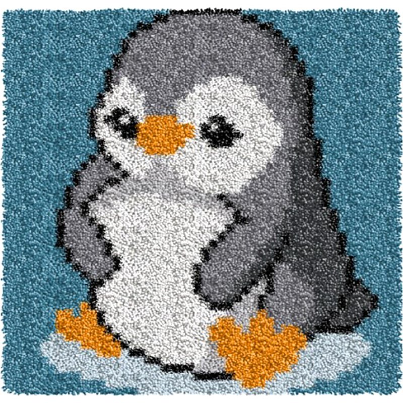 YP Latch Hook Kits for Kids Adults DIY Rug Tapestry Kits with Printed Canvas Embroidery Kits Festival Gifts Home Decoration (Penguin,11.8inch X 11.8inch)