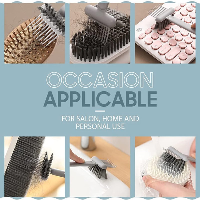 - 1. 2-in-1 Comb Cleaning Brush: Our brush cleaner features a double-sided design to thoroughly clean the brush; first, use the skeleton brush head to remove hairs from the brush; second, use the sides of the bristles to clean the comb brush.