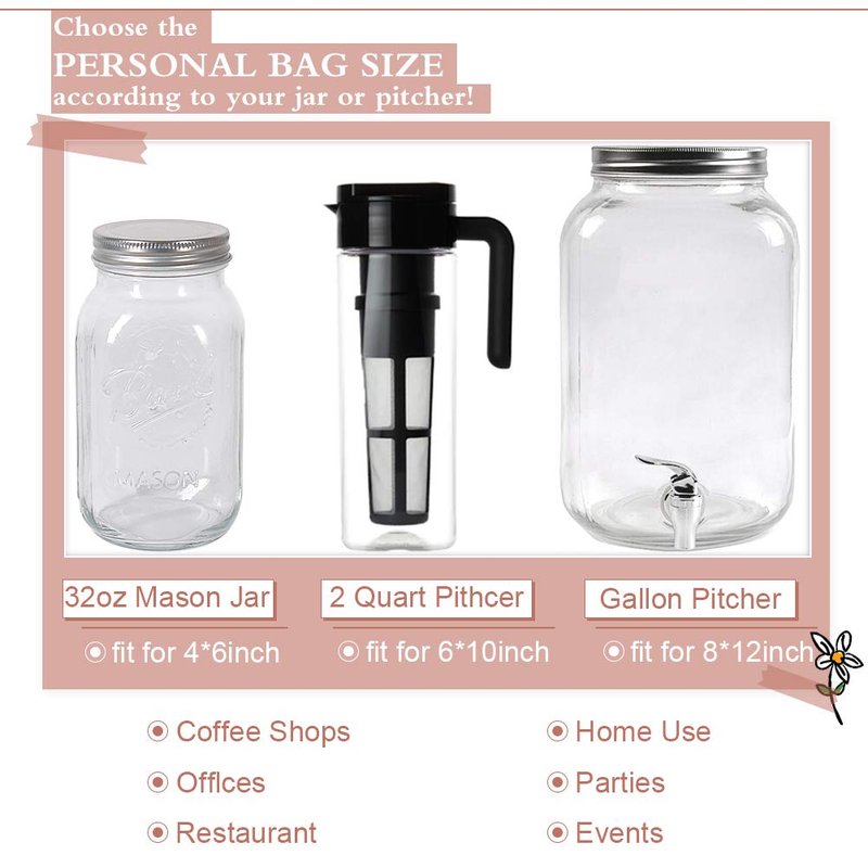 - ☕Size - 10X15cm(4x6in), suitable for 32oz Mason jar or standard size pitchers. Easy 3 steps get your flavorful cold brew coffee!
