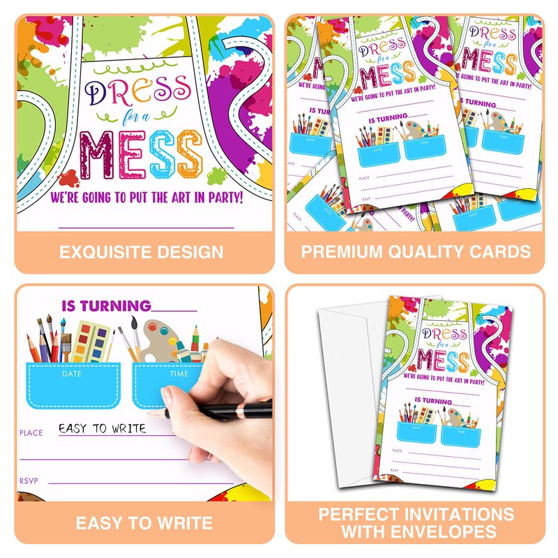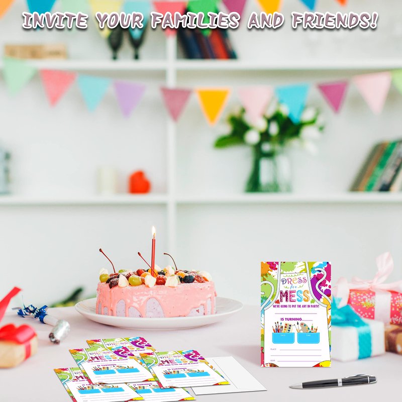 YQV Art Birthday Party Invitations, 20-Count Painting Birthday Party Invites With Envelopes-HBYQK-B57