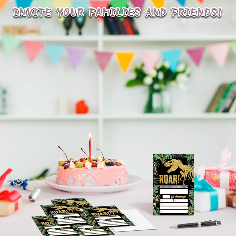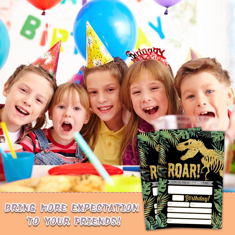 YQV Gold Dinosaur Birthday Party Invitations, 20-Count Jungle Birthday Party Invites With Envelopes-HBYQK-B44