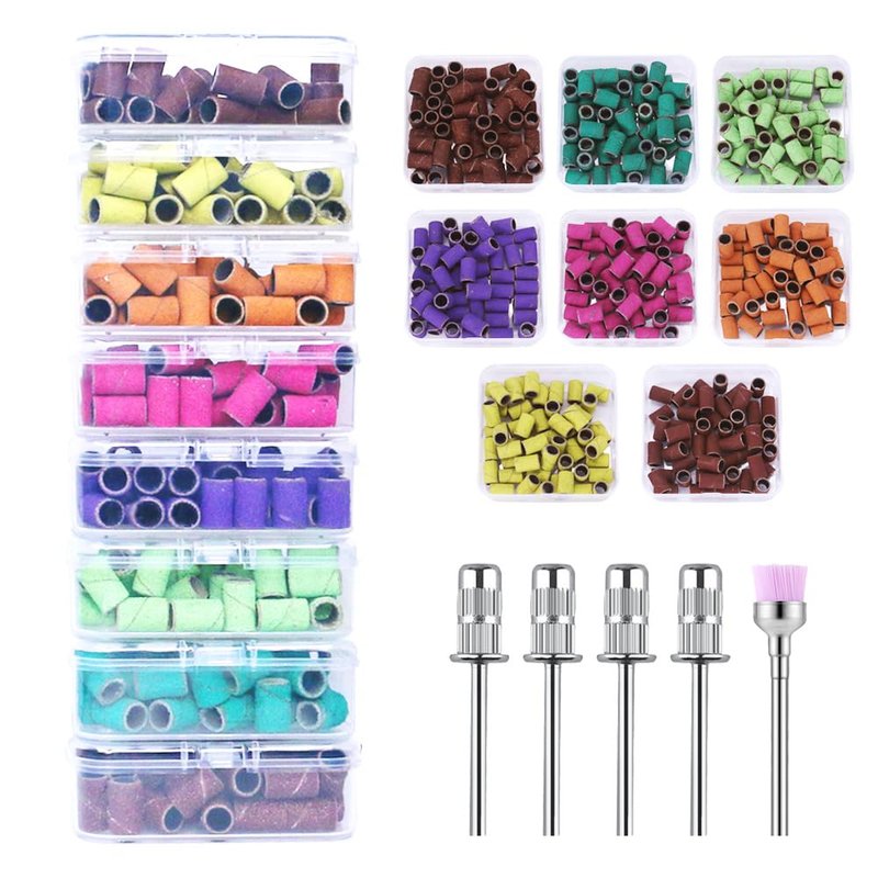 Yreihn 400 Pcs Sanding Bands for Nail Drill with 4 Mandrel Bits for Manicure and Pedicure, 60/80/100/120/150/180/240/320 Grit
