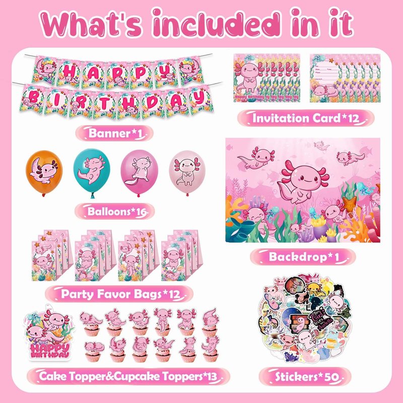 - 【Perfect Party Supplies】:You can use axolotl party supplies to create a unique axolotl birthday party, or to celebrate your birthday as the axolotl theme, which will be an unforgettable and interesting party.