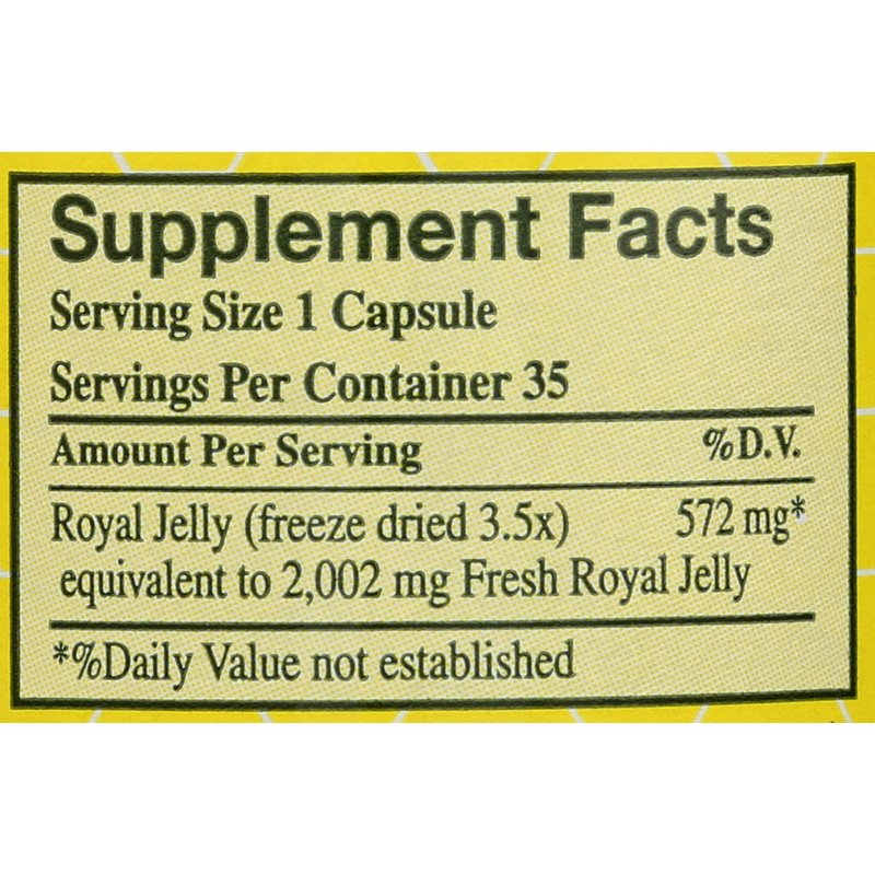 Royal Jelly contains life forming highly nutritional complexity of nature's superfood that queen bee feeds on and incredibly lays over 2,000 eggs per day,. Storehouse of naturally occurin nutrients: full array of B-Vitamins, essential amino acids, fatty acids, phytosterols, enzymes, acetyl chroline, gamma globulin, lecithin, natural hormones, aoHDA catalystic factor "R" and many more.