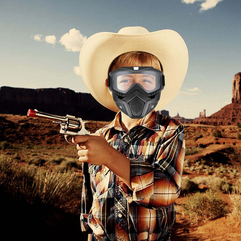 Our detachable mask can be removed to match your other mask and goggles.You also can wear the detached mask in different way:full face or half face .Except that,our airsoft mask is not only for airsoft shooting game cosplay ,but also can be turned into a safety goggle when split out,then you wont need to purchase a new one .In a word, you 'll have different experiences just for only one detached mask