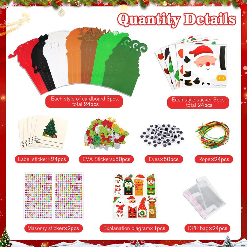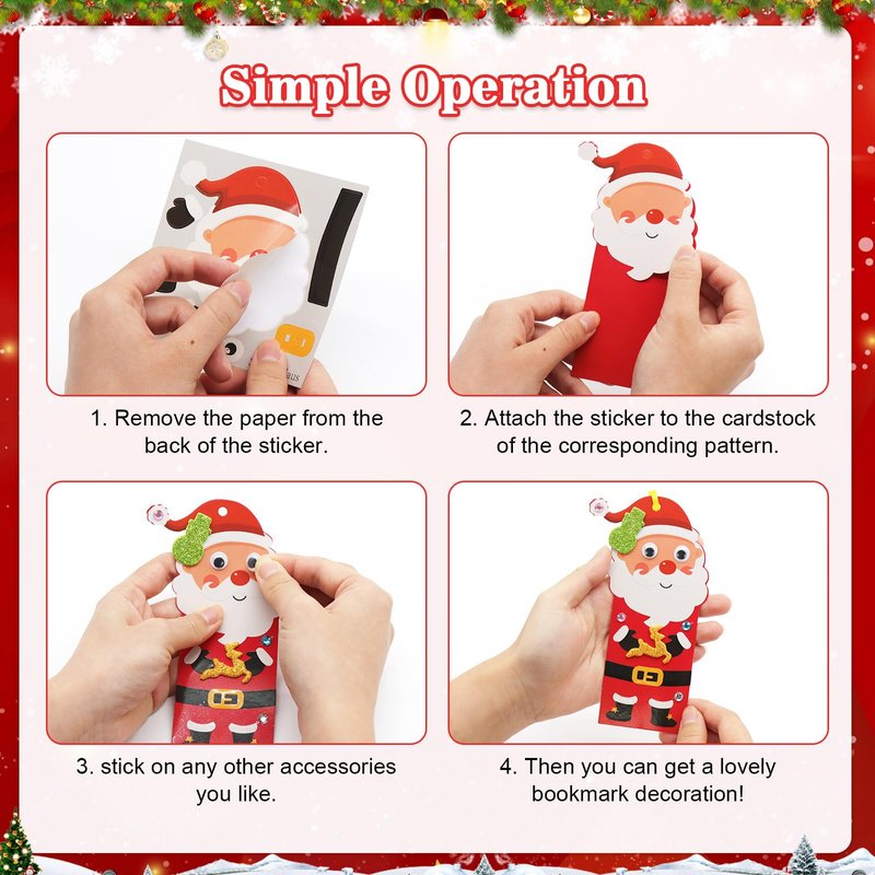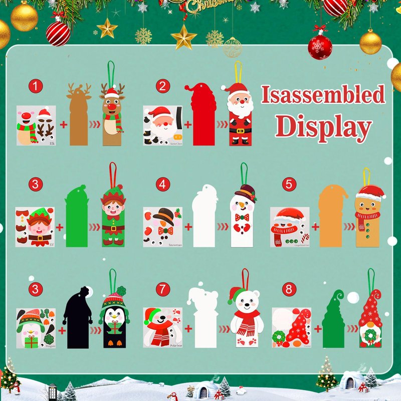 - Easy to Create: These Christmas Diy Christmas ornaments are easy to store and can be pasted and peeled multiple times; Simply place the matching stickers on the original card—no extra tools needed; these kids christmas crafts are lightweight and portable, they're perfect for Christmas parties, classrooms, or group activities; The kit includes transparent bags and twist ties for individual gift sets, adding a special winter touch with festive stickers; Ideal for fostering creativity
