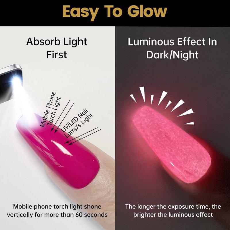 YTD Likomey Glow in the Dark Gel Nail Polish,1 Pcs 15ml Neon Pink Luminous Glow Effect Gel Polish, Fluorescent Bright Manicure Spring UV Nail Gel Varnish,YG06