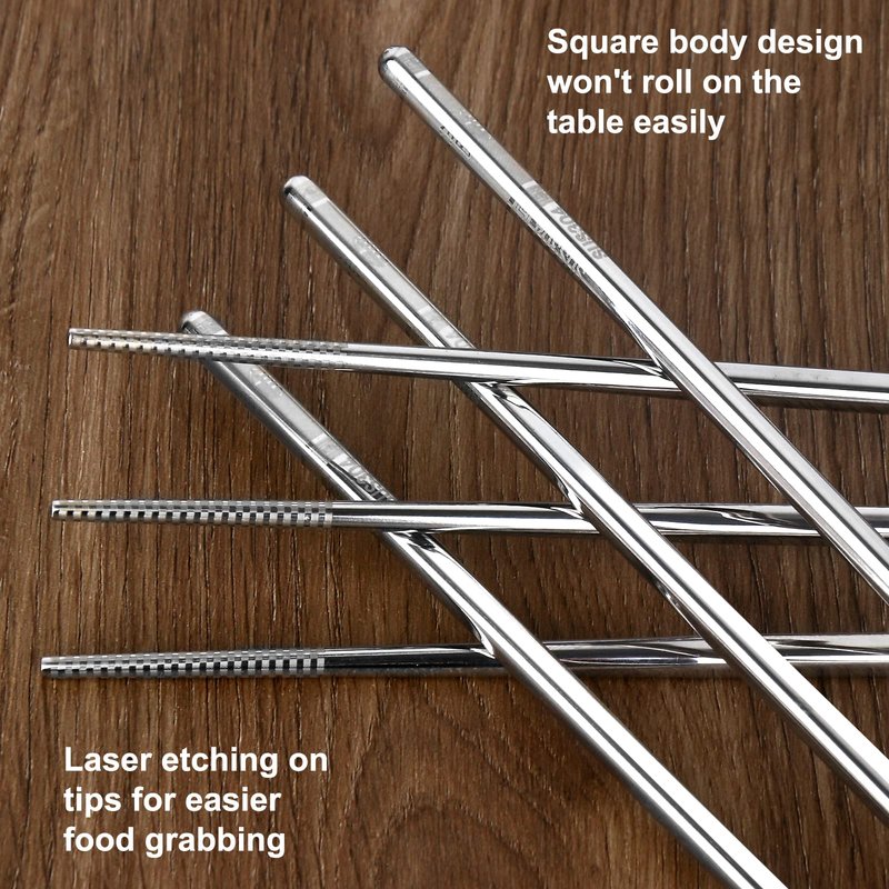 YTLX 5 Pairs Premium Stainless Steel Metal Chopsticks, Reusable Silver Chopsticks Dishwasher Safe, Square Lightweight Non-Slip Chop Sticks Easy to Use for Home Kitchen Hotel Restaurant