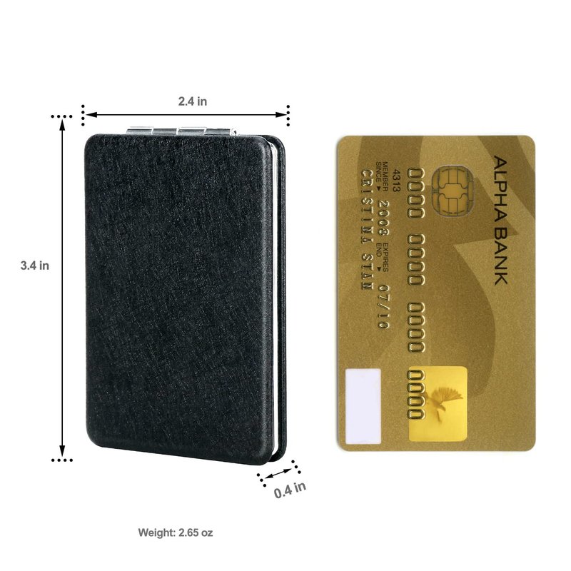 YTZJ Direct Compact Vanity Mirror for Men, Black, Travel Makeup Mirror for Handbag Pocket Wallet, Portable Double-Sided Magnifying Cosmetic Mirror for Daily, Work, Business