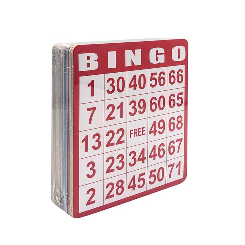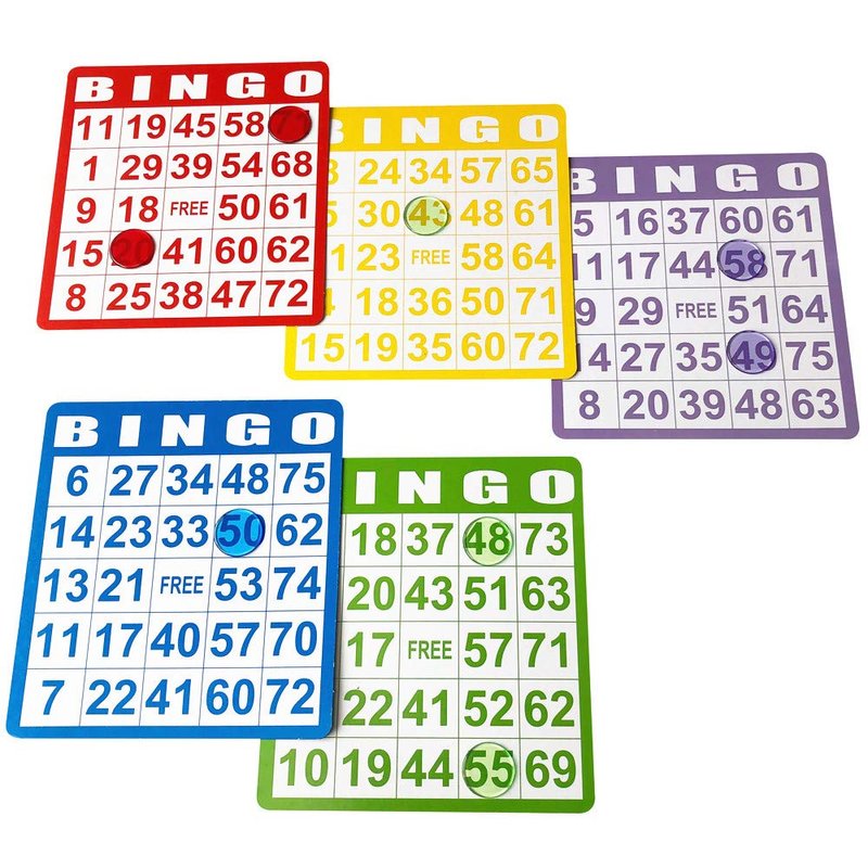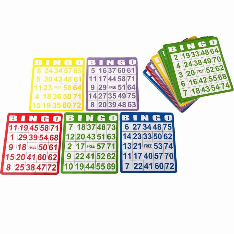 - Set of 100 mixed color bingo cards (hard cardboard)