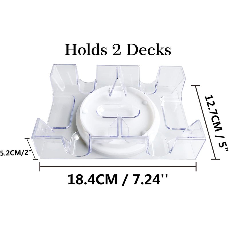 This Yuanhe 2 Deck Rotating-Revolving Playing Card Tray with 2 slots is made of durable,clear plastic.