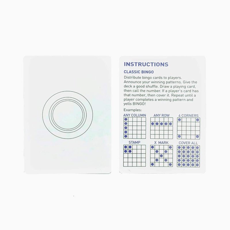 These cards are used to call bingo games; 1 blank card is included to replace a lost or damaged card; and 1 instruction card.