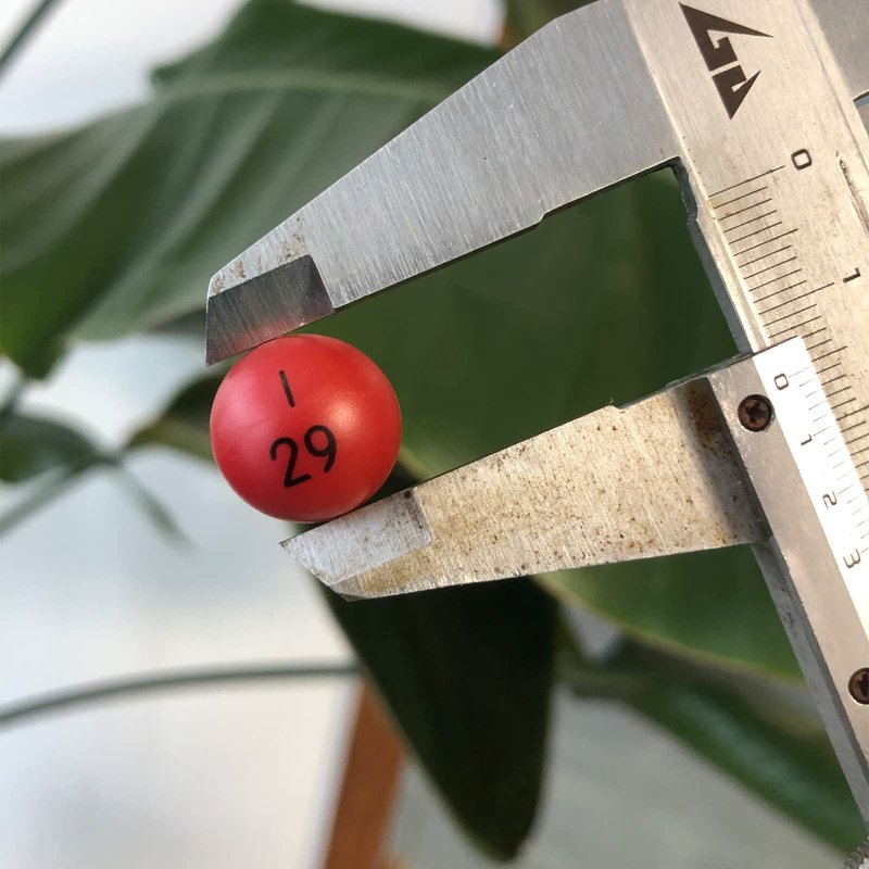 The letters and numbers are in large black print on one side of the ball, making it easy to read and call combinations.