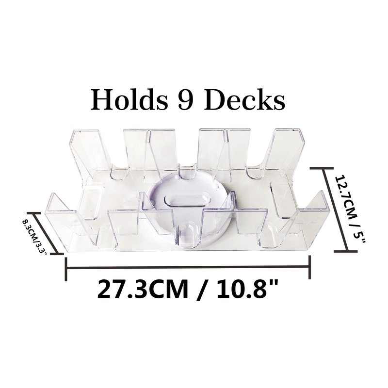 Dimensions: 10.8(L) x 5(W) x 3.3(H) inches, Holds up to 9 decks of wide or narrow standard playing cards.