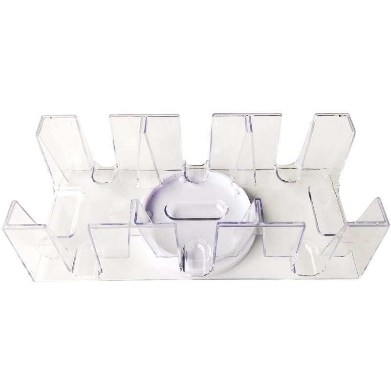 This Yuanhe 9 Deck Rotating-Revolving Playing Card Tray with 3 slots is made of durable,clear plastic.