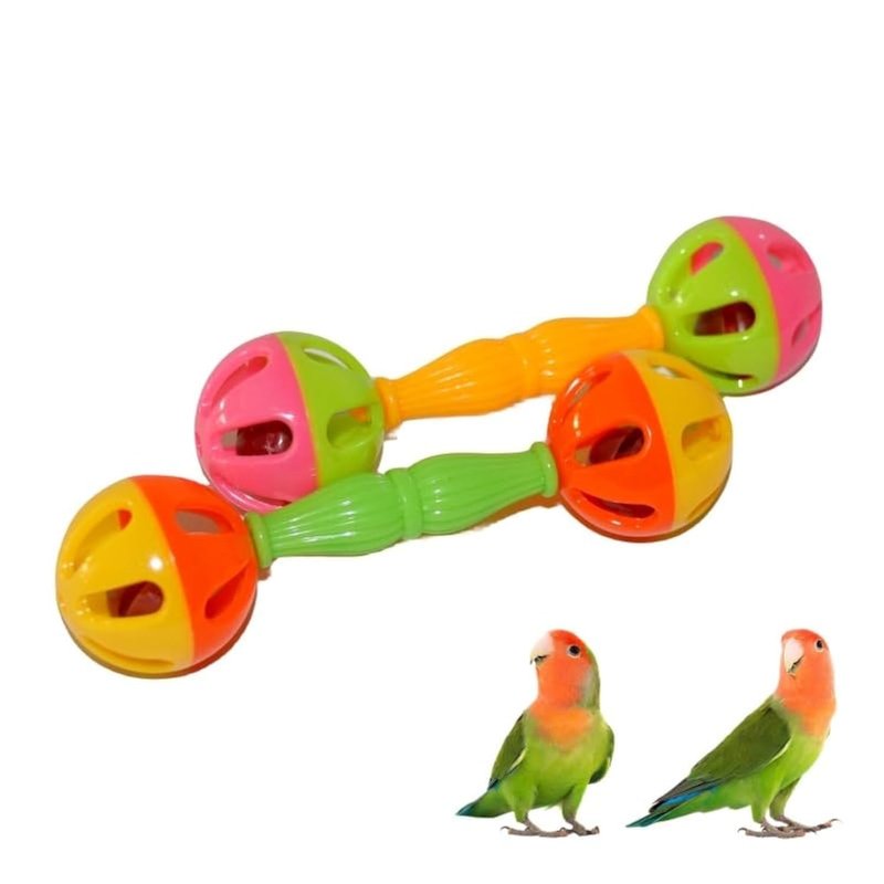 YuanHolumid 2Pcs Multicolour Bird Parrot Toy Rattle Birds Fun Exercise Plastic Double-Headed Bell Pet Toys Small and Medium Birds Foraging Foot Toy,Bird Toys, Pet Supplies