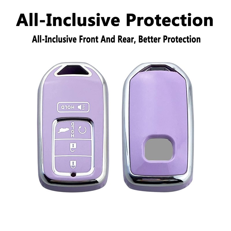 Yuebutor Key Fob Cover Case Compatible with Honda Accord Civic CRV HRV CRZ Fit Odyssey Passport Pilot Jed Crider Crosstour Spirior Accessories Shell (Purple-Single Set)