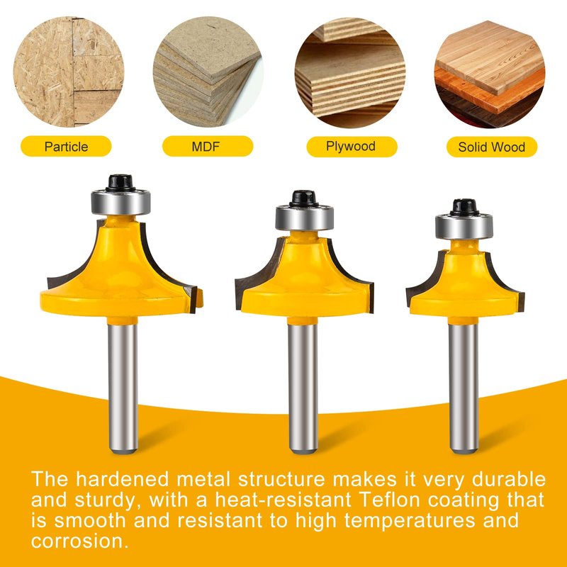 - ✅[Package include] 1/4 Inch Shank Versatile Round Over Edging Router Bit Set,1/2", 3/8", 5/16" ,1/4",3/16",1/8"Radius(6 pieces)