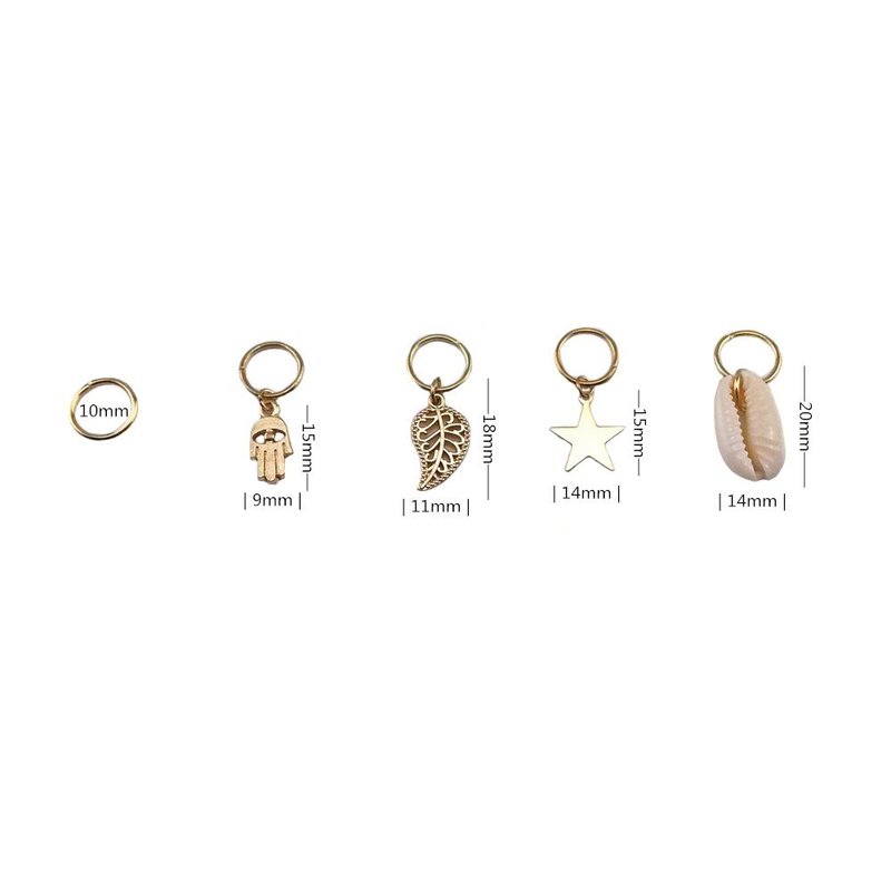 - Pack of 30 (5 shell, 5 hands, 5 leaves, 5 stars, 10 gold rings)