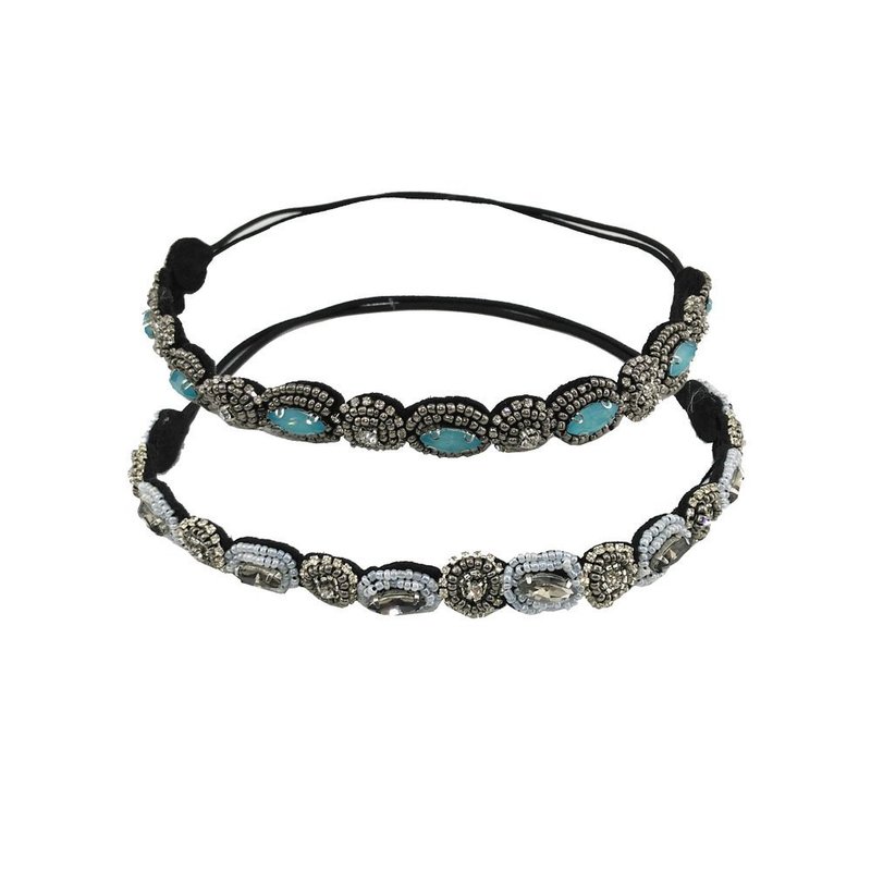 yueton Pack of 2 Handmade Crystal Rhinestone Beads Elastic Headband Hair Band Women Hair Jewelry Accessories