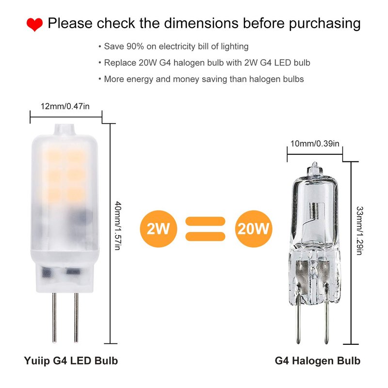 - 【WAARANTY】Our 2700K g4 led bulbs have 24 months warranty, pls e-mail us if you have any quality issues. Yuiip guarantees free replacement or refund during the warranty period and quick respond within 24 hours
