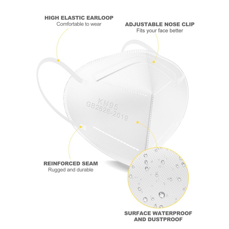 - 【5-Ply Protective Layer】The KN95 face mask consists of 2 layers of non-woven fabric, 2 layers of melt-blown cloth, and 1 layer of hot air cotton. With skin-friendly non-woven fabric, this mask is comfortable. It effectively absorbs moisture.