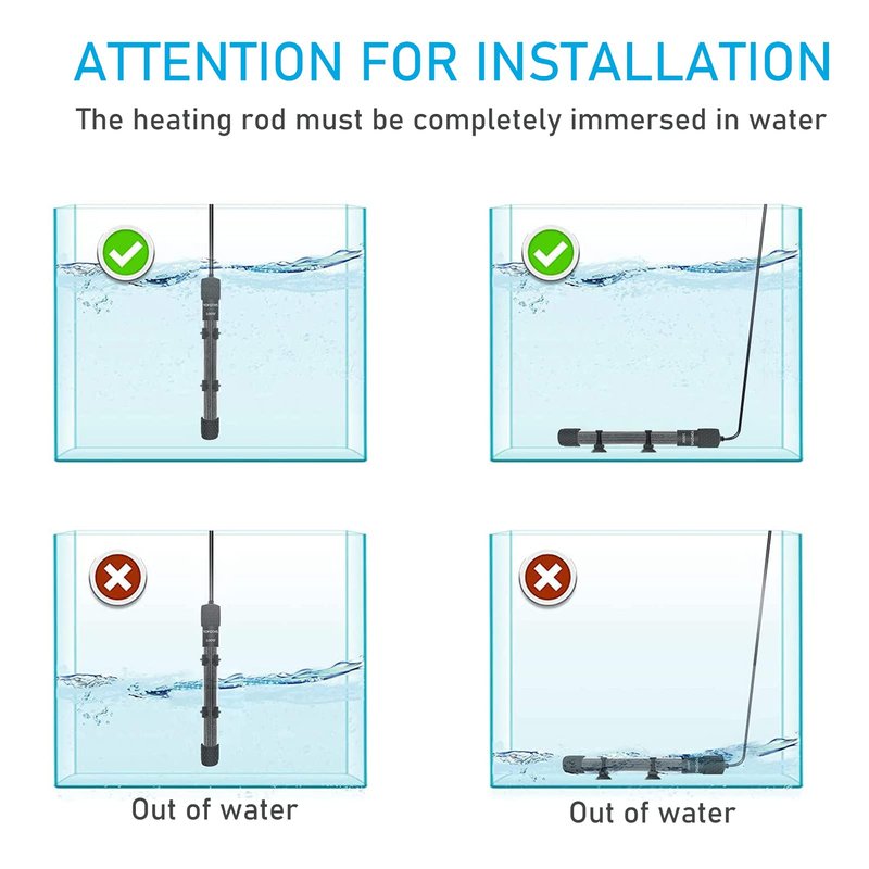 - 【Overheating Protection, Out of Water Protection】The power will be cut off and stop heating automatically if the heater out of water or overheating. Protect your fish. Never cook your fish. 30days full refund, 12-months warranty.