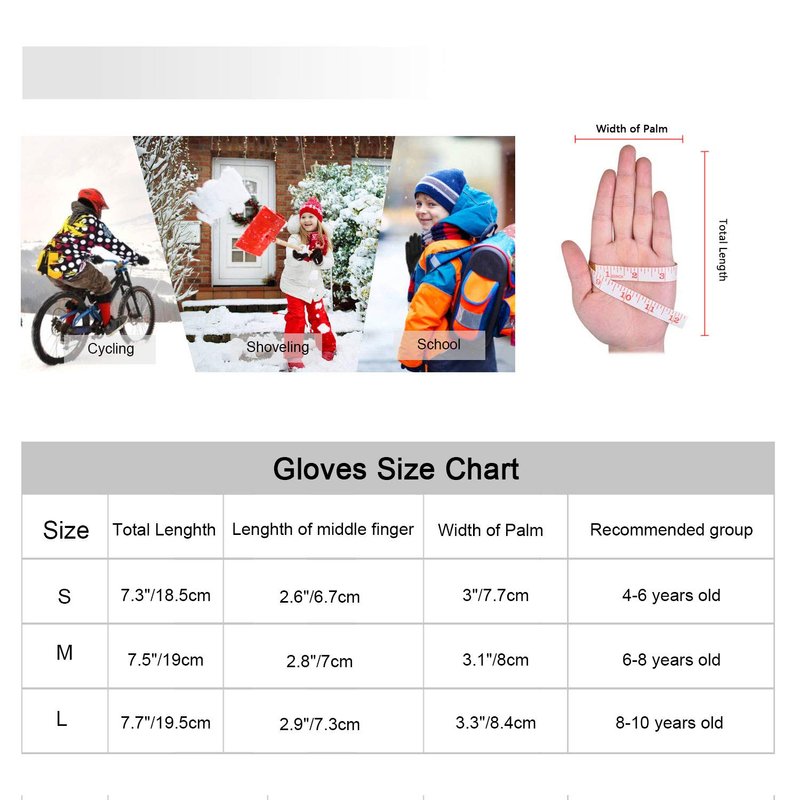 - Water Repellent Layer - Out layer waterproof gloves protect kids hands warm dry when they play even in light rain.
