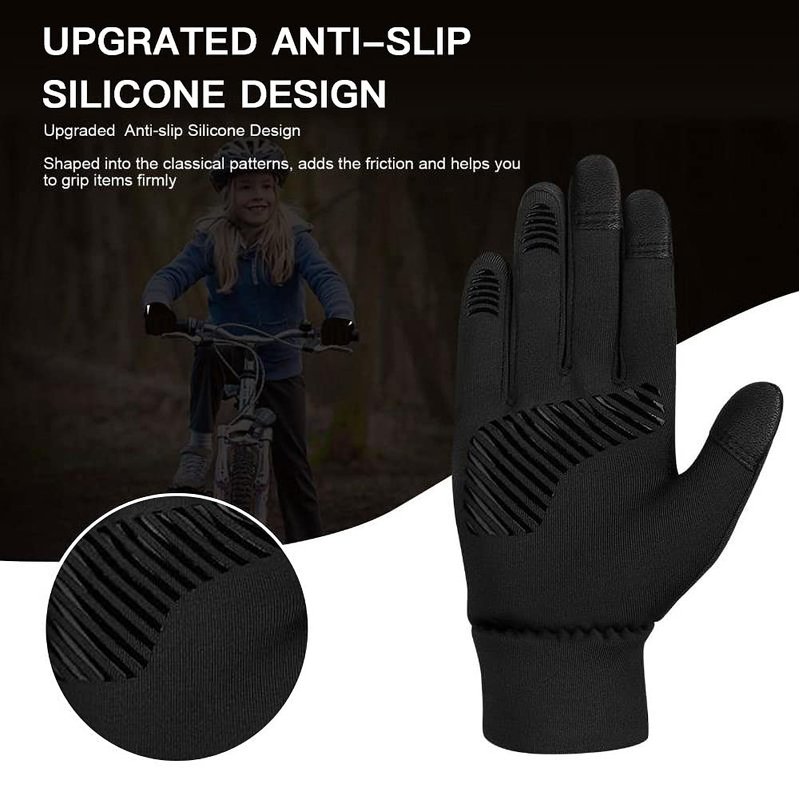 Multifunctional Kids Winter Gloves - The inner kids gloves fleece fabric keeps your hands warm and comfortable in cool winter weather! These gloves are not ideal when temperatures drop toward single digits.They are good for winter indoor game activities and autumn outdoor activities such as cycling, running, jogging, walking, etc. Also can be used as gloves liners for bike gloves or ski gloves in cold days, but not waterproof for snow.