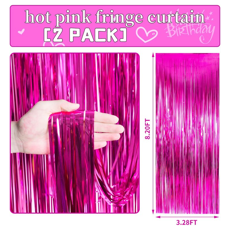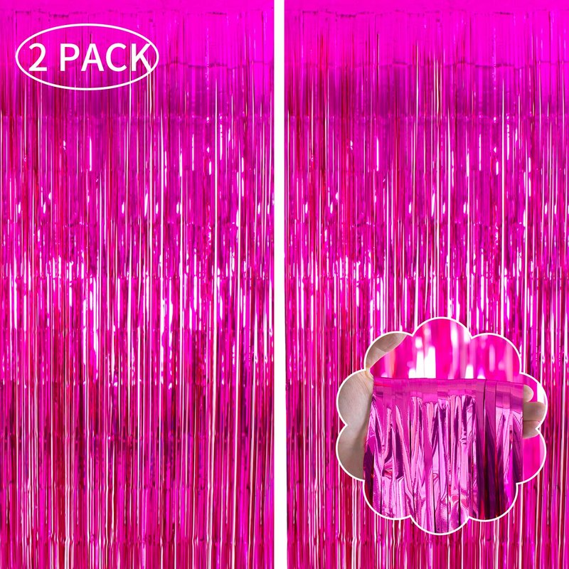 - 🎉 Versatile Party Decorations 🎉: This hot pink tinsel backdrop curtains is suitable for various hot pink party decorations purposes. Hang it on walls or windows.