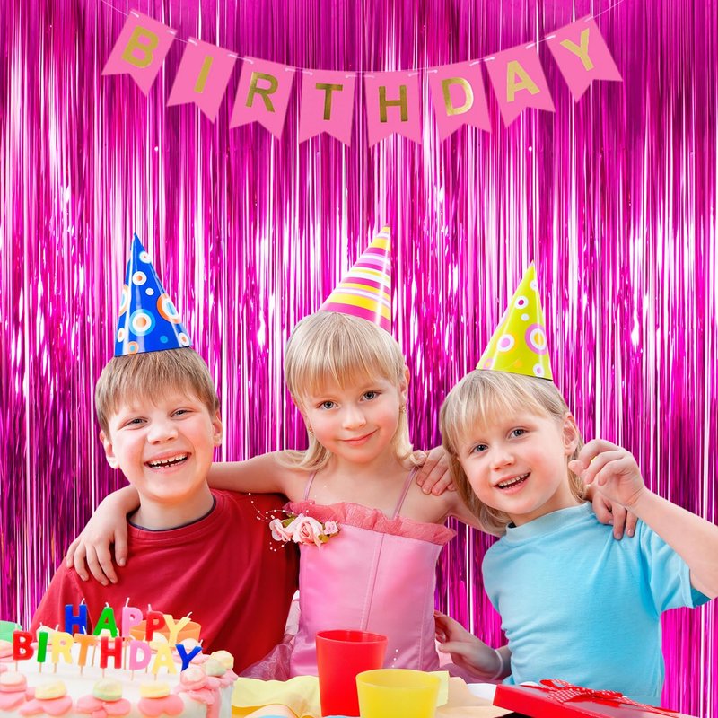 - 🌈 Hot Pink Birthday Decorations 🌈:You can use this glitter hot pink tinsel streamers foil backdrop to decorate your celebration birthday party.