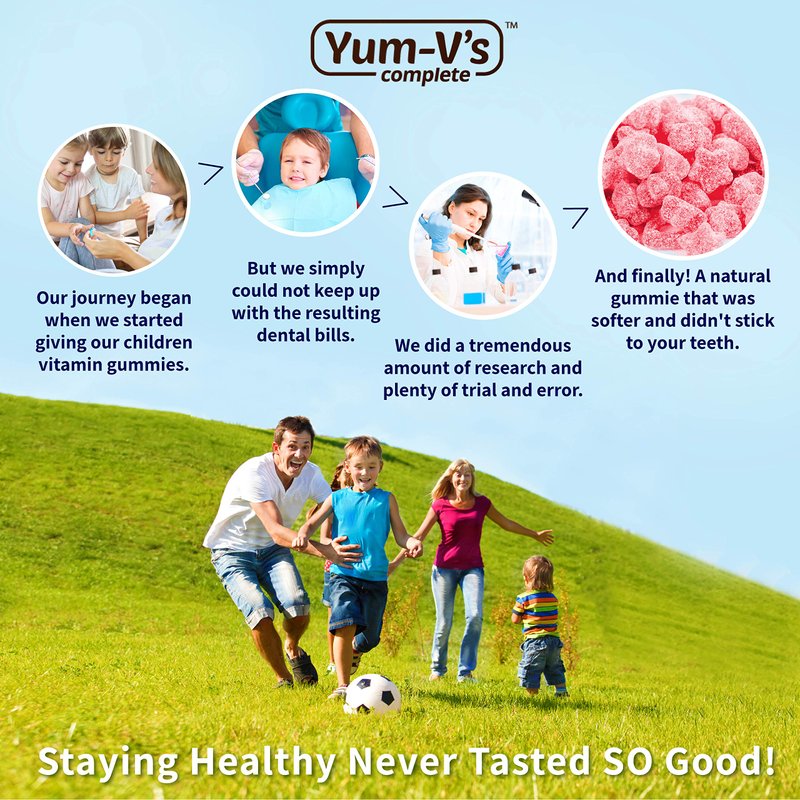 - Flavor: Mouthwatering and delicious fruit flavored jellies are packed with nutritional value. YUM-V's Complete chewable gummy-like jellies are an excellent way to get your daily supplements in an easy and tasty manner.