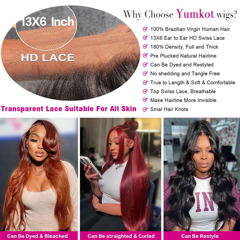 • 【180% Density Brown Lace Front Wigs Human Hair】: The lace area of 13×6 is larger than that of 13×4, which meets more needs of your requirements for any shape and is more natural after install the wig.And wigs with 13×6 large lace area fit better on the head after you install the wig than wigs with 5×5 wear and go,not easy to slip off.