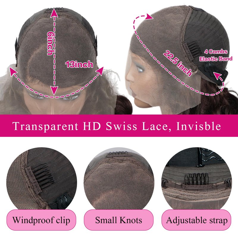• 【Body Wave Brown Lace Front Wigs Human Hair Cap Size】: Brown Body Wave Lace front wigs human hair, average cap size (21-22.5 Inch) with adjustable straps and 4 Combs. It can match most people's head circumference perfectly. After receiving the wig, please try to see if the size of the net cap fits your head. If you think the net cap is small, Please return the wig in its entirety.