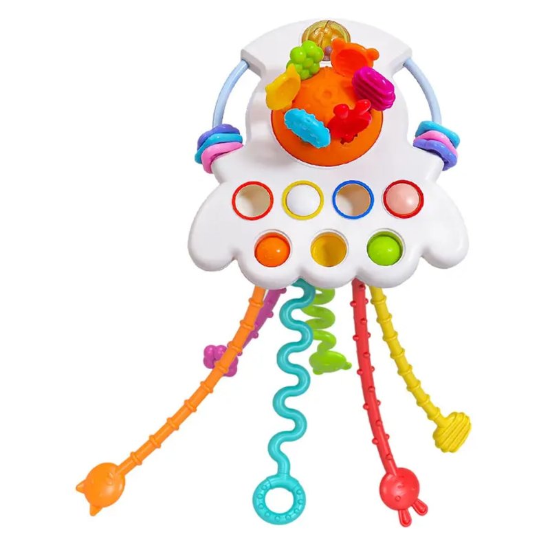 Yummy Baby Montessori Sensory Toy for Babies, Silicone Pull String Teething Toy, Perfect for Entertaining Baby While Developing Motor and Sensory Skills (Space Ship)