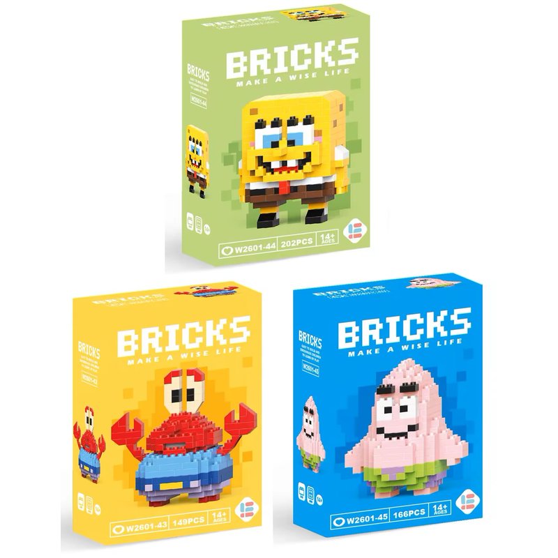 3 Pack of Fun to Build Microblock Charatcters. Great to Collect and DIsplay on Bedroom Furniture, Office Desks, Anywhere You Wish To Bring a Little Fun.