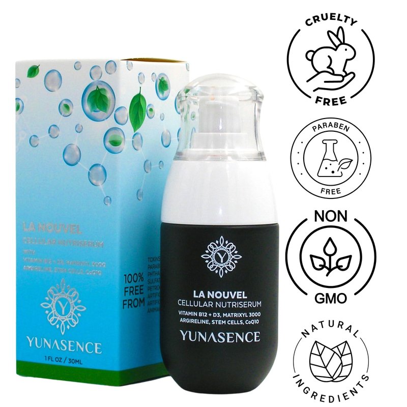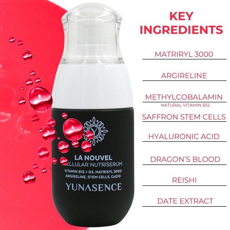 YUNASENCE LA NOUVEL Cellular Nutri Serum with Vitamin B12+D3, Matrixyl 3000, Argireline, Stem Cells & CoQ10, 1oz Antiaging, firming, lifting.