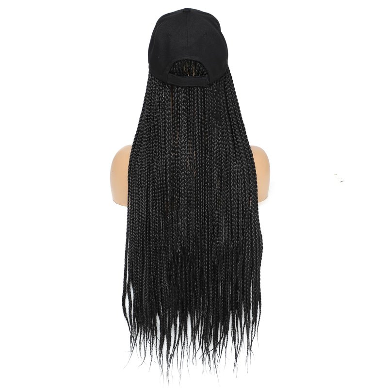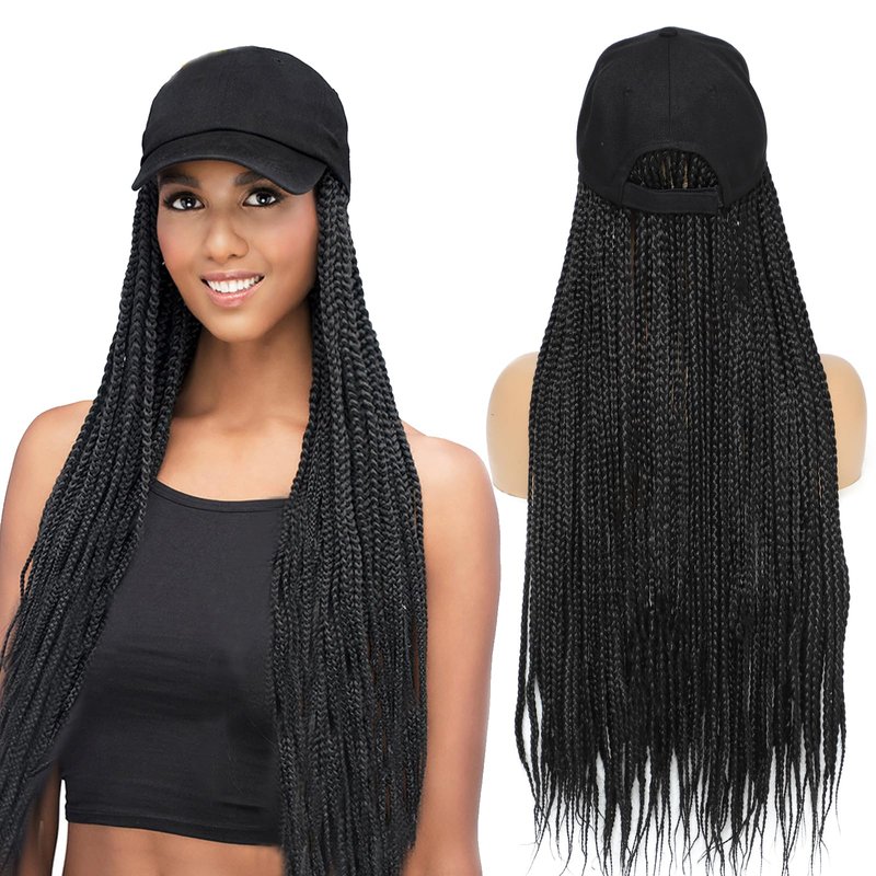 Yunkang Braided Baseball Cap Wig Box Braid Hair Extensions with Hat Ombre Color Synthetic Hair Cap Wig with 24inch Long Braiding Hair for Women (B-Black)