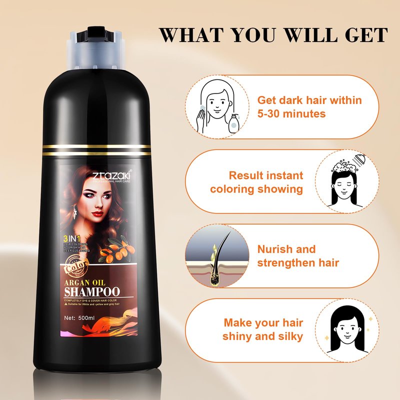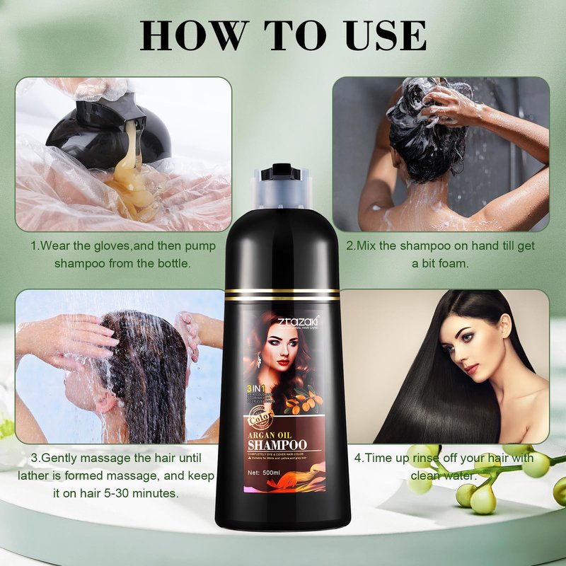 - Gentle and Safe Hair Color Shampoo:This black dye shampoo contains a variety of herbal extracts, can replenish the nutrients needed by the hair. Different from traditional hair dye,contains no ammonia. Natural plant formula, no pollution, no contamination of scalp, natural effect, no hair injury. It is also nourishes, protects and repairs scalp.