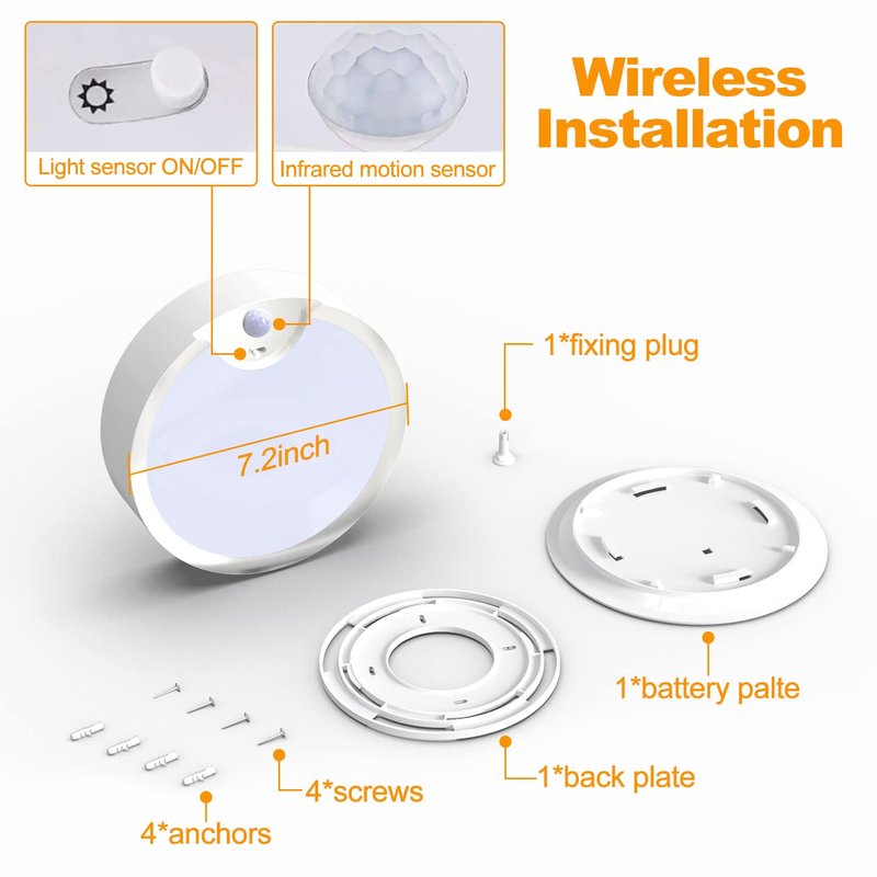 - 【Wide application】Battery powered motion sensor lights are great for space lacking light such as closets, stairs, storage rooms, basements, hallways, sheds, laundry rooms, bathrooms, etc.