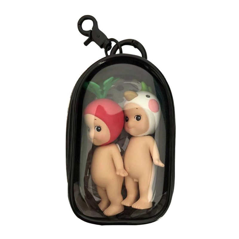 Yushen Clear Figure Display Bag with Keychain for Sonny Mystery Box Mini Figures Doll Carrying Display Case Keychain Pouch for Collectibles (Black, Cabin)