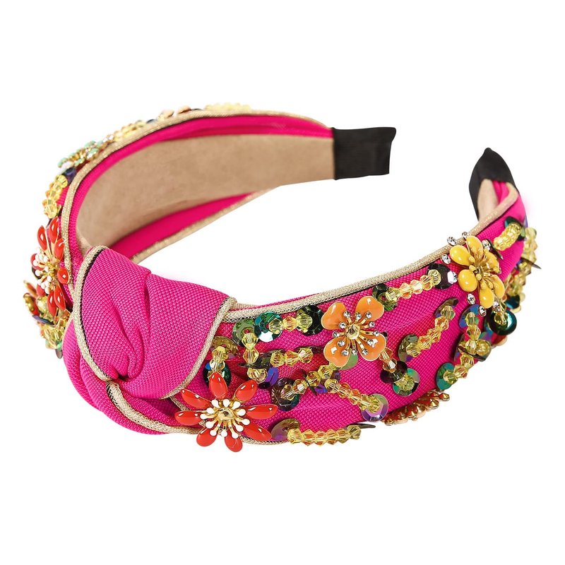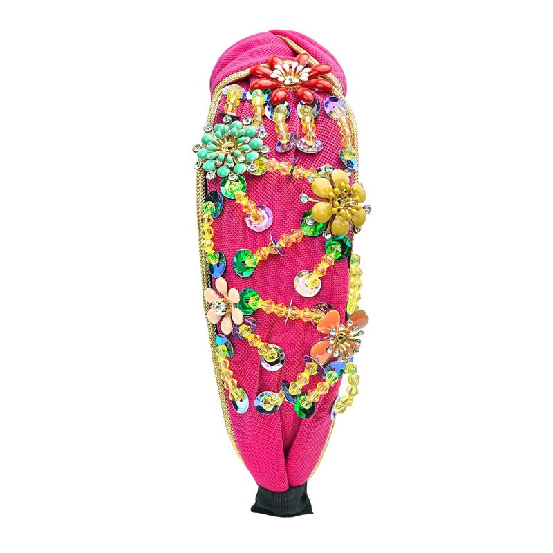 Yusier Rhinestone Crystal Wide Headbands for Women Knot Turban Fashion Vintage Hairband Handmade Jewelry Girls Hair Accessories (Rose Red)